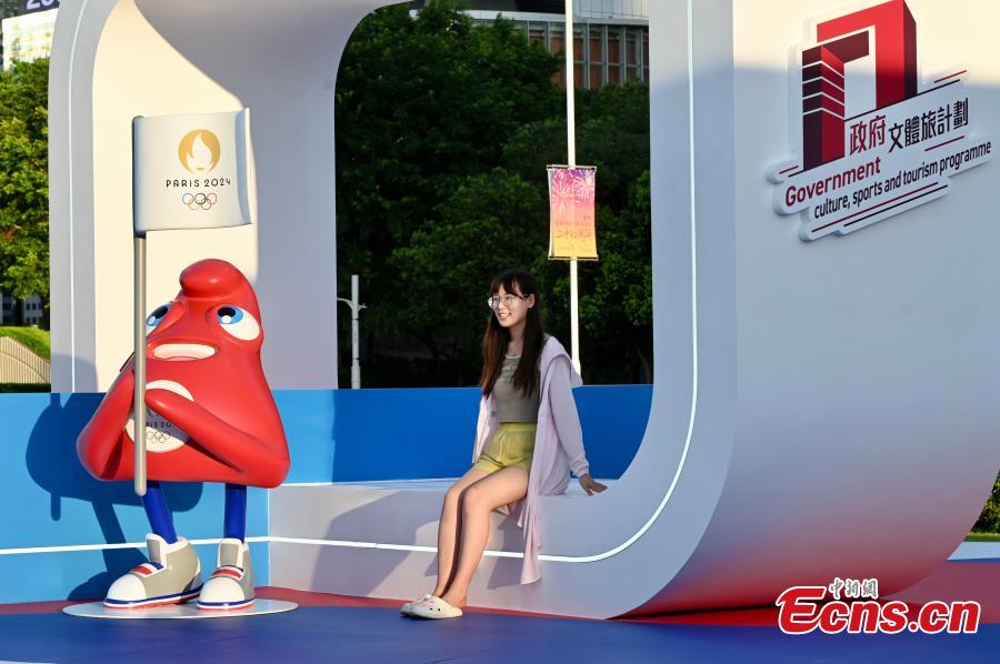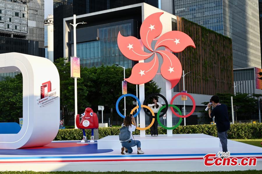 Decorations are installed at a park in the Hong Kong Special Administrative Regionto greet the upcoming 2024 Paris Olympic Games, July 9, 2024. (Photo: China News Service/Li Zhihua)