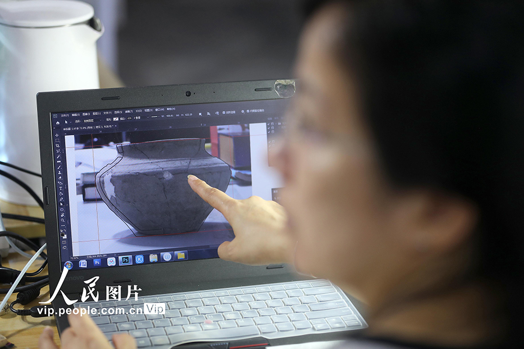 A conservator uses technological means to make restoration plans at Jingmen Museum, central China's Hubei Province, July 4, 2024. (vip.people.com.cn/Zhao Ping)