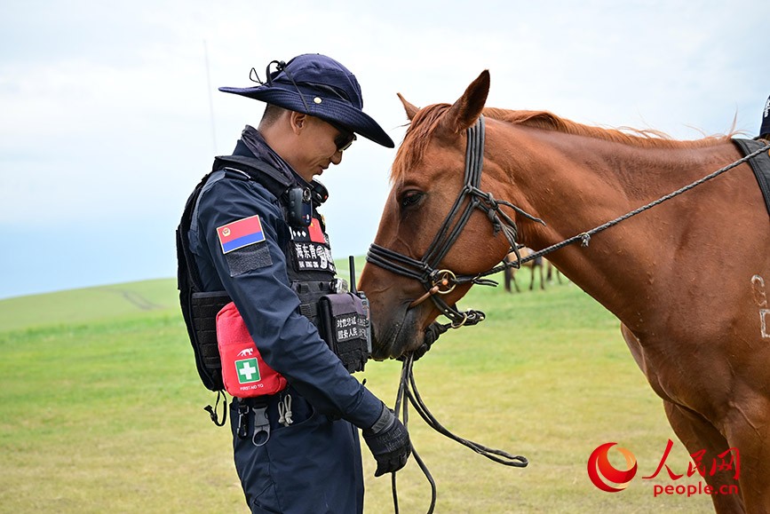Photo shows Dalintai and his horse. Dalintai is a member of a horseback patrol team working in the area around the Mo'ergele River in Chenbaerhu Banner, Hulunbuir city, north China's Inner Mongolia Autonomous Region. (People's Daily Online/Kou Yanan)