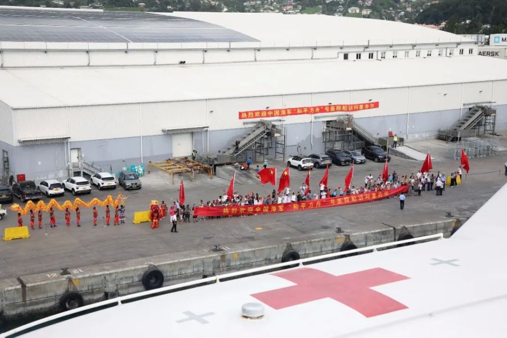The ship Peace Ark arrived in Port Victoria at 10 a.m. and received a grand welcome ceremony held by the Seychelles side at the dock. Seychelles Minister for Health Peggy Vidot and Chief of Defense Forces Michael Rosette attended the ceremony and toured the ship. Seychelles military and government officials, Chinese Ambassador to Seychelles Lin Nan and other embassy staff, representatives of Chinese-funded institutions, and overseas Chinese welcomed the ship at the dock.