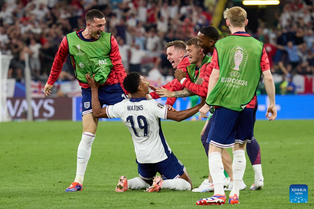 BERLIN, July 10 (Xinhua) -- Substitute Ollie Watkins sent England to their second successive Euro final with a 2-1 victory over the resilient Netherlands at the Euro 2024 semifinal on Wednesday.