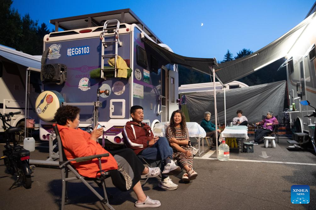 Tourists rest at a RV camp in Xing'an National Forest Park in Yichun, northeast China's Heilongjiang Province, July 11, 2024. Yichun in northeast China's Heilongjiang Province becomes a popular travel destination in summer. With the city's abundant forest resources, many tourists come here for its fresh air and mild temperature. (Xinhua/Zhang Tao)