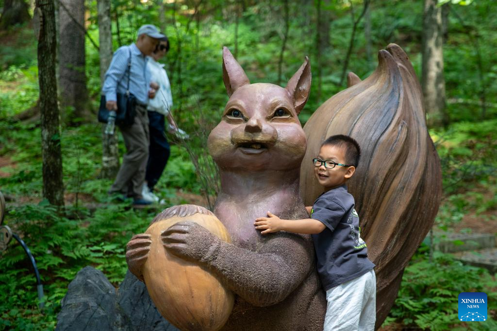 A tourist poses for photos in Shangganling stream forest park in Yichun, northeast China's Heilongjiang Province, July 11, 2024. Yichun in northeast China's Heilongjiang Province becomes a popular travel destination in summer. With the city's abundant forest resources, many tourists come here for its fresh air and mild temperature. (Xinhua/Zhang Tao)
