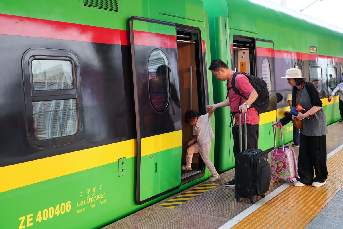 Passengers board a train at Xishuangbanna railway station, Yunnan, on April 13, headed to Luang Prabang in Laos. (WANG JINGYI/XINHUA)