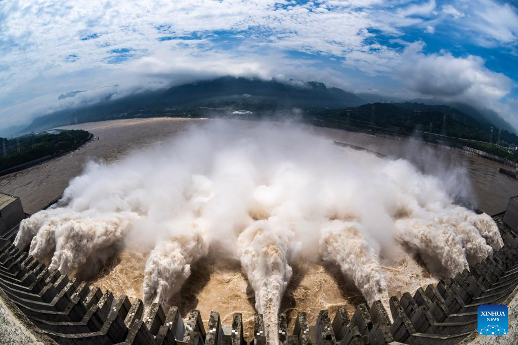 Three Gorges Dam in central China's Hubei discharges floods