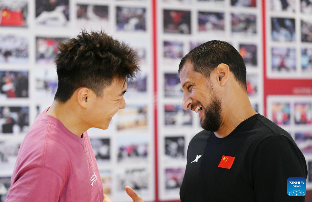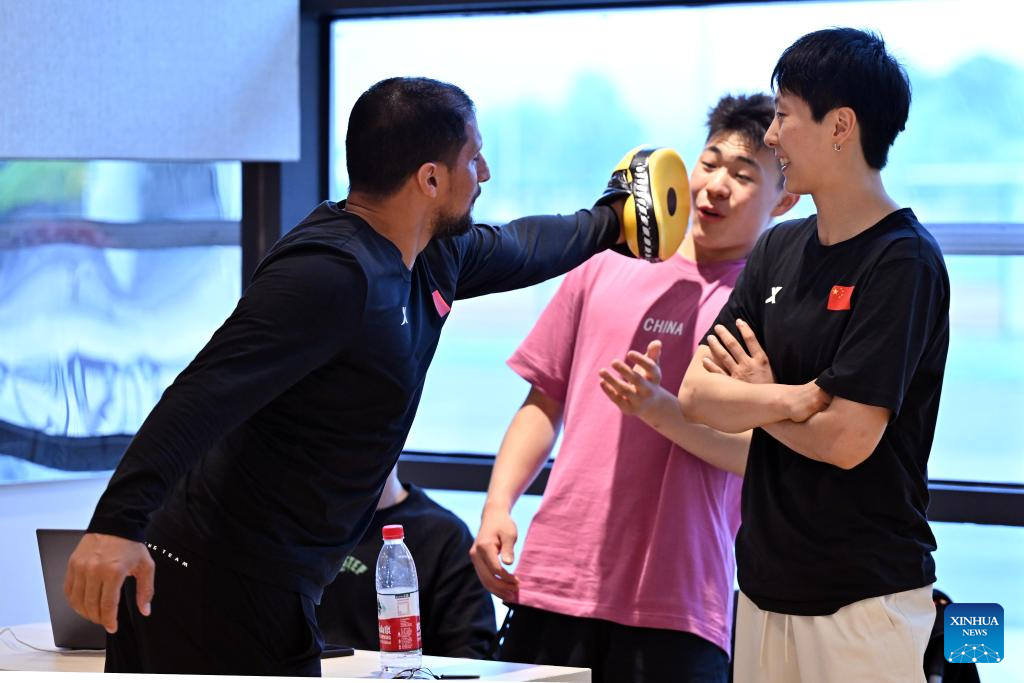French coach Mounir Biba (L) is seen during a training session in Nanjing, east China's Jiangsu Province, May 11, 2024. (Xinhua/Cao Can)