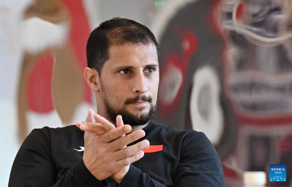 French coach Mounir Biba skips rope during his workout in Nanjing, east China's Jiangsu Province, May 10, 2024. (Xinhua/Cao Can)