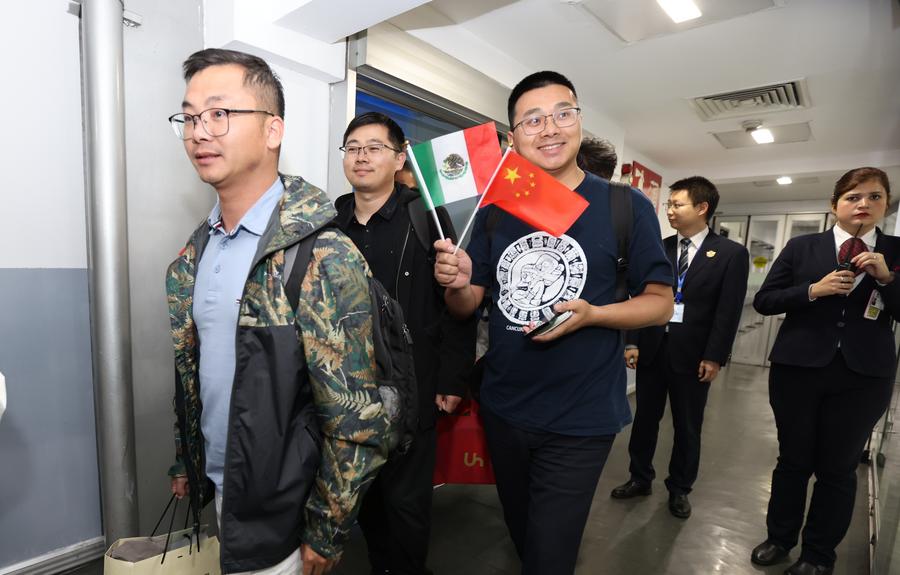 Passengers of the first flight on a direct air route linking south China's Shenzhen with Mexico City, the capital of Mexico, arrive at the Benito Juarez International Airport in Mexico City, Mexico, on May 11, 2024. (Xinhua/Li Mengxin)