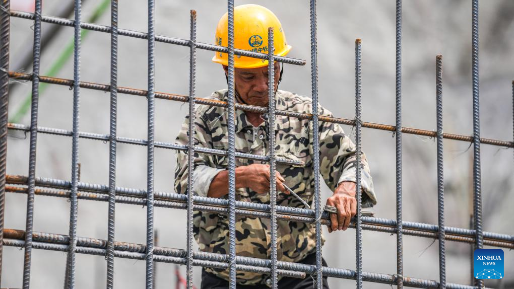 A worker works at the construction site of the Tianmen grand bridge in southwest China's Guizhou Province, July 17, 2024. The 1,553-meter grand bridge is a major project on the expressway linking Anshun and Panzhou in Guizhou. (Xinhua/Tao Liang)