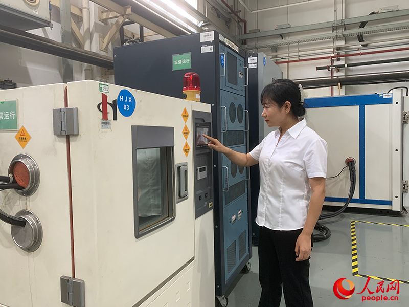 Battery expert Xu Aiqin is testing battery safety(People's Daily Online/Chen Hao)
