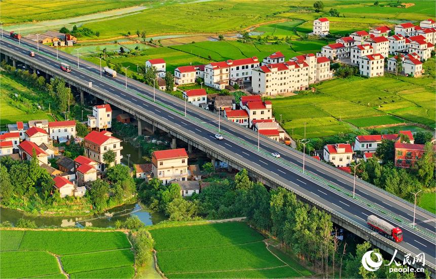 Photo shows a beautiful view near Xijiang village of Nanxin township, in Nanchang county, Nanchang city, the capital of east China's Jiangxi Province, and an expressway runs through here. (People's Daily Online/Zhu Haipeng)