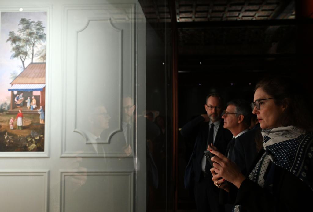 Visitors watch an exhibition at the Palace Museum in Beijing, capital of China, April 1, 2024. The exhibition "The Forbidden City and the Palace of Versailles: Exchanges Between China and France in the 17th and 18th Centuries" was held at the Palace Museum in Beijing from April 1 to June 30, 2024, showcasing about 200 cultural relics. (Xinhua/Jin Liangkuai)