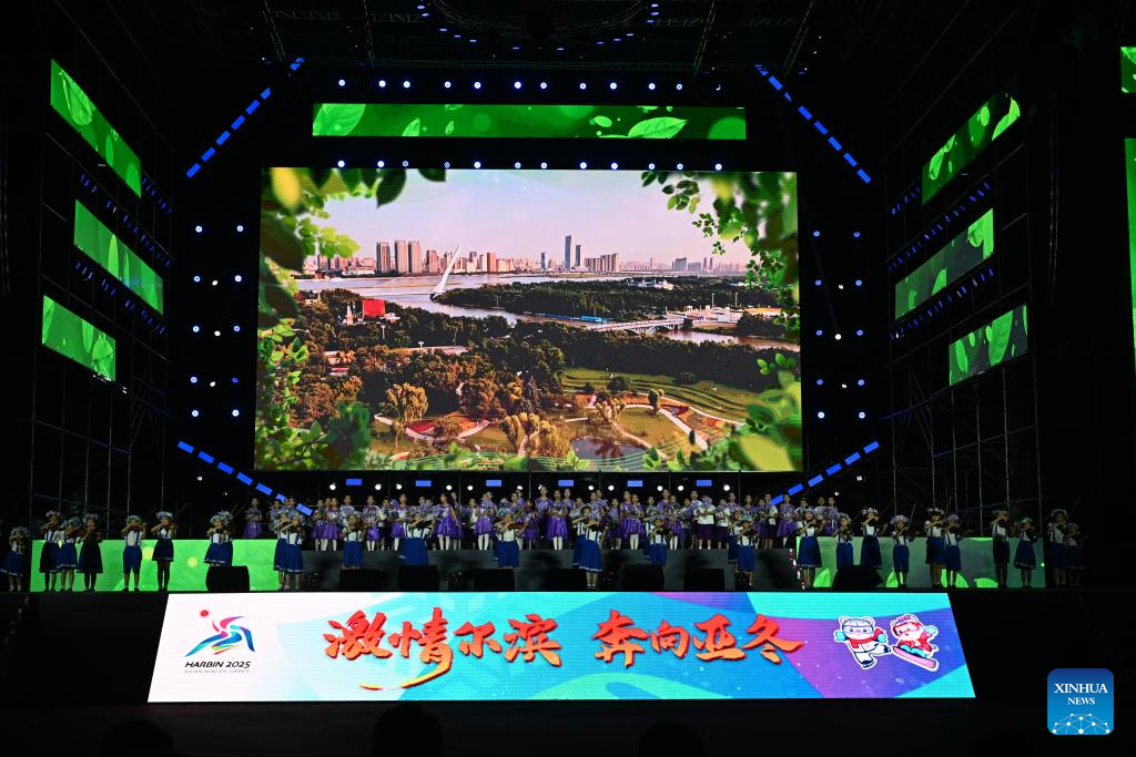 Performers act during a ceremony to mark 200 days to go for the 9th Asian Winter Games Harbin 2025 in Harbin, northeast China's Heilongjiang Province, July 22, 2024. (Xinhua/Wang Song)