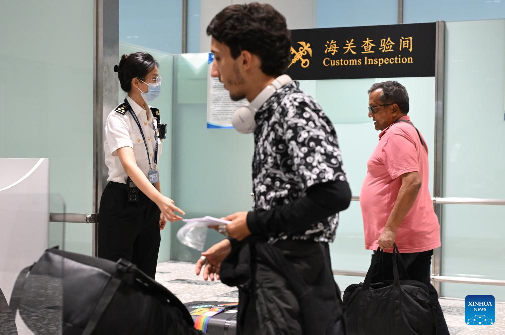 Travelers pass through customs at Beijing Daxing International Airport in Beijing, capital of China, July 18, 2024. With easier entry policies, including a 144-hour visa-free transit policy that expanded to 37 entry ports as of July 15 and pilot visa-free policies for some countries, "on-a-whim travel" to China is becoming a reality. (Xinhua/Cai Yang)