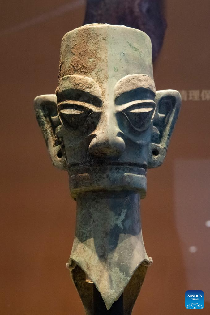 Exhibits are pictured at the Sanxingdui Museum in Guanghan City, southwest China's Sichuan Province, July 21, 2024. (Xinhua/Tang Wenhao)