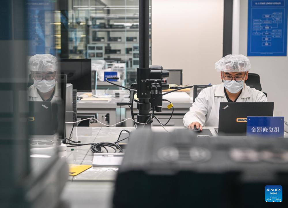 More than 50 pieces of newly restored bronze ware, golden ware, jadeware, ivory and other artifacts are displayed at the exhibition, which will last until the end of 2024.