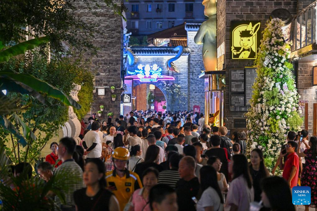 Tourists visit the Wanshou Palace cultural block in Nanchang, east China's Jiangxi Province, July 22, 2024. (Xinhua/Li Xin)