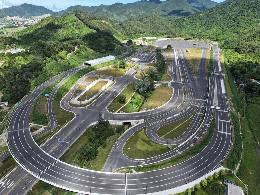 An aerial drone photo taken on July 22, 2024 shows a test facility of intelligent connected vehicles (ICVs) and drones in Pingshan District of Shenzhen, south China's Guangdong Province. (Xinhua/Li He)