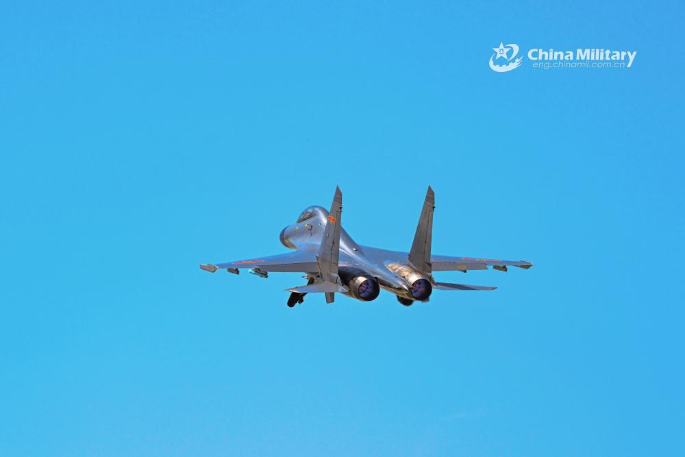 A fighter jet attached to an aviation regiment under the PLA Air Force soars into the sky during a flight training exercise in early June 2024. (eng.chinamil.com.cn/Photo by He Wanli)