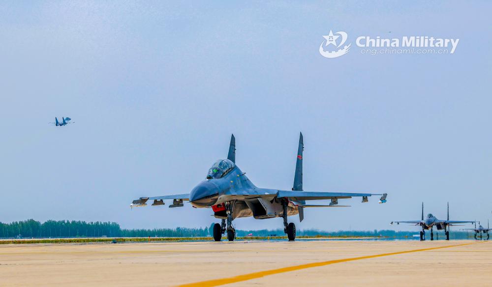 Fighter jets attached to an aviation regiment under the PLA Air Force taxi on the runway to get ready for a flight training exercise in early June 2024. (eng.chinamil.com.cn/Photo by He Wanli)