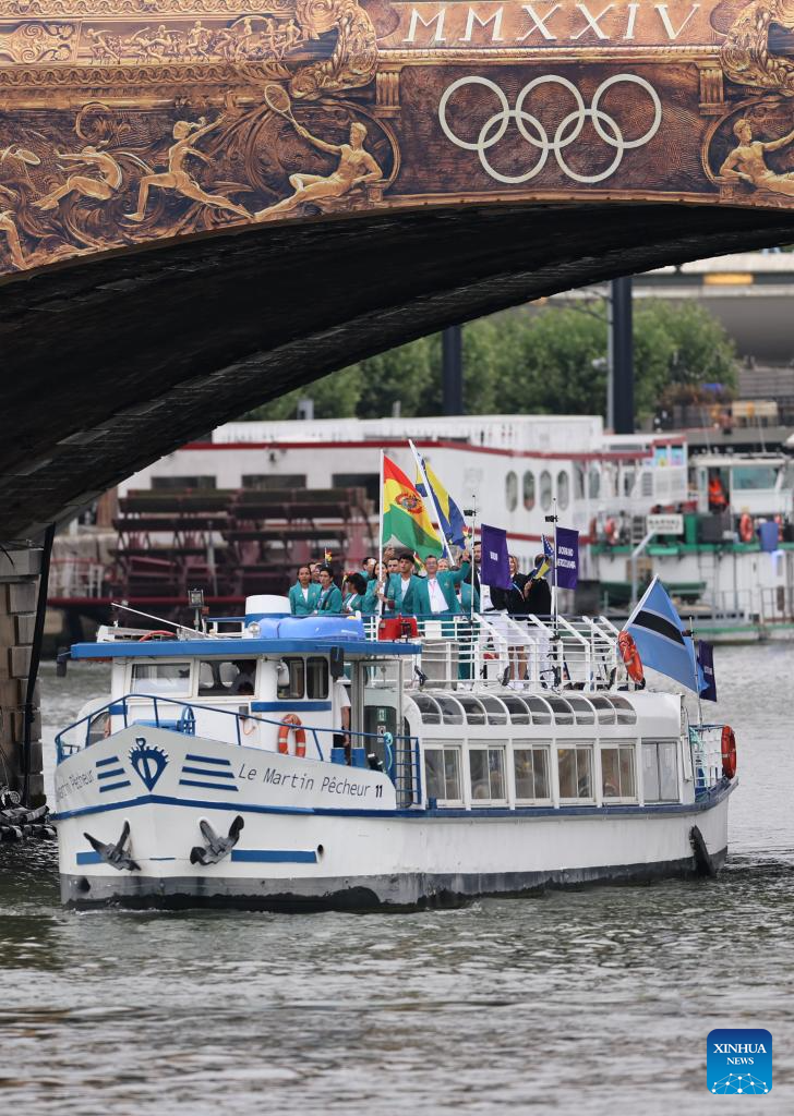 Members of the delegations are seen during the opening ceremony of the Paris 2024 Olympic Games in Paris, France, July 26, 2024. (Xinhua/Wan Xiang)