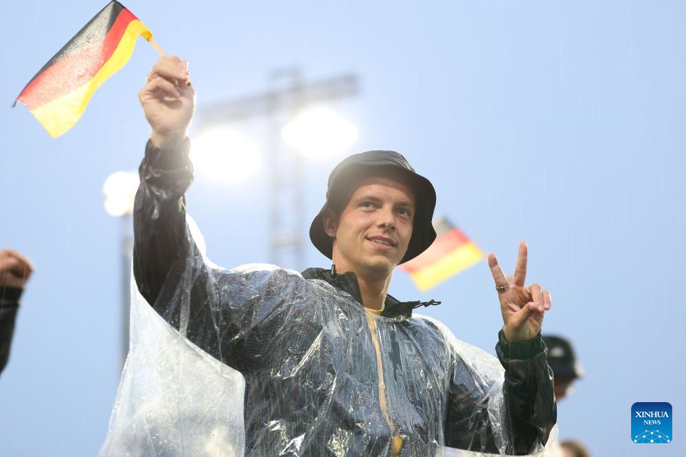 A member of the delegation of Germany is seen during the opening ceremony of the Paris 2024 Olympic Games in Paris, France, July 26, 2024. (Xinhua/Li Ming)