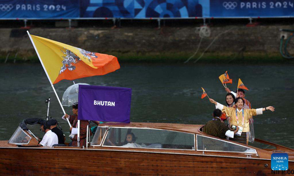 Members of the Bhutanese delegation attend the opening ceremony of the Paris 2024 Olympic Games in Paris, France, July 26, 2024. (Xinhua/Li Jing)