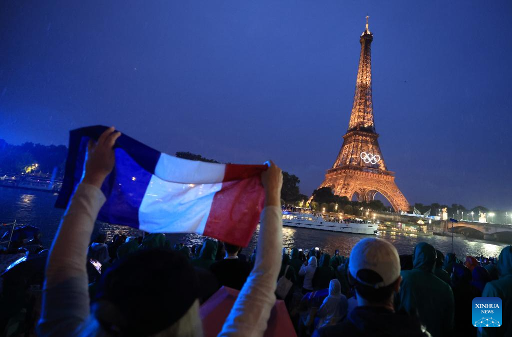 PARIS, July 26 (Xinhua) -- After a century-long wait, Paris welcomed back the Olympic Games with a rainy yet historic ceremony held on the River Seine.