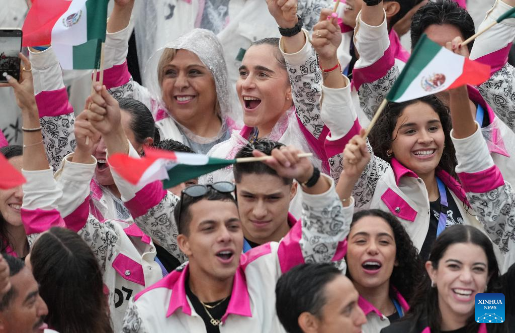 Members of the delegation of Mexico are seen during the opening ceremony of the Paris 2024 Olympic Games in Paris, France, July 26, 2024. (Xinhua/Wan Xiang)