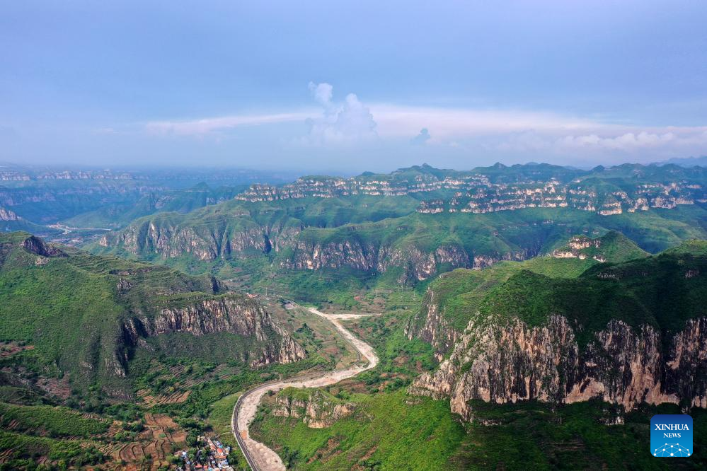An aerial drone photo taken on July 24, 2024 shows a view of the Taihang Mountain in Pingshun County, Changzhi City of north China's Shanxi Province. (Xinhua/Zhan Yan)