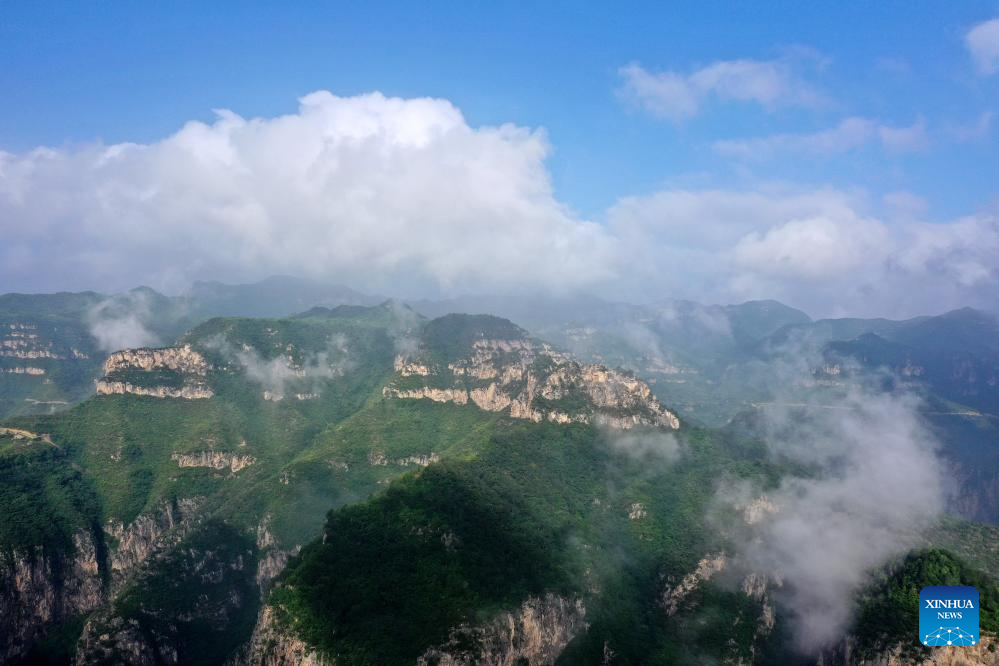 An aerial drone photo taken on July 26, 2024 shows a view of the Taihang Mountain in Pingshun County, Changzhi City of north China's Shanxi Province. (Xinhua/Zhan Yan)