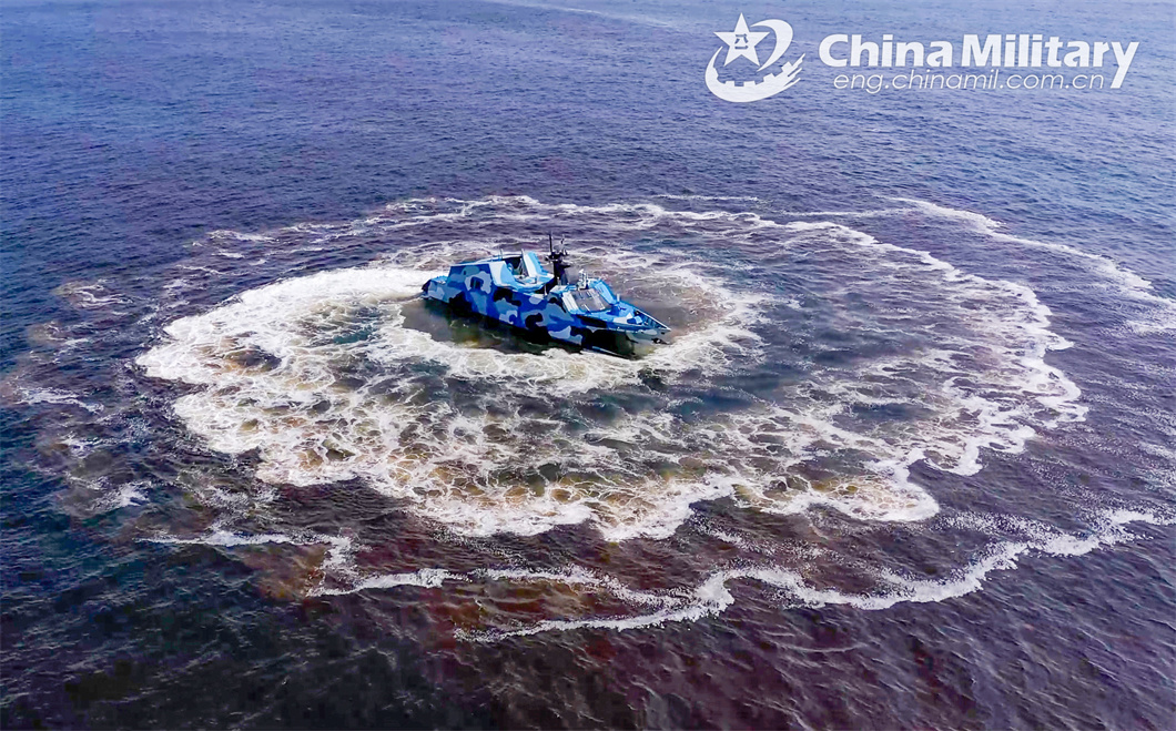 A fast attack missile boat attached to a group with the PLA Navy steams at sea during a recent maritime training exercise in waters of the East China Sea. (eng.chinamil.com.cn/Photo by Du Kecheng)