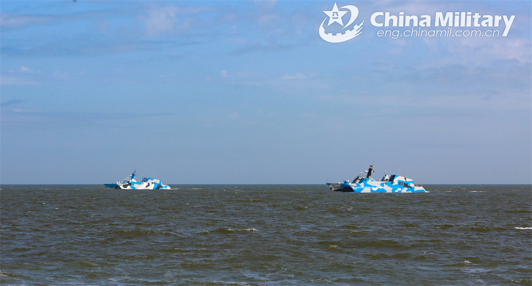 Fast attack missile boats attached to a group with the PLA Navy steam in formation during a recent maritime training exercise in waters of the East China Sea.(eng.chinamil.com.cn/Photo by Du Kecheng)