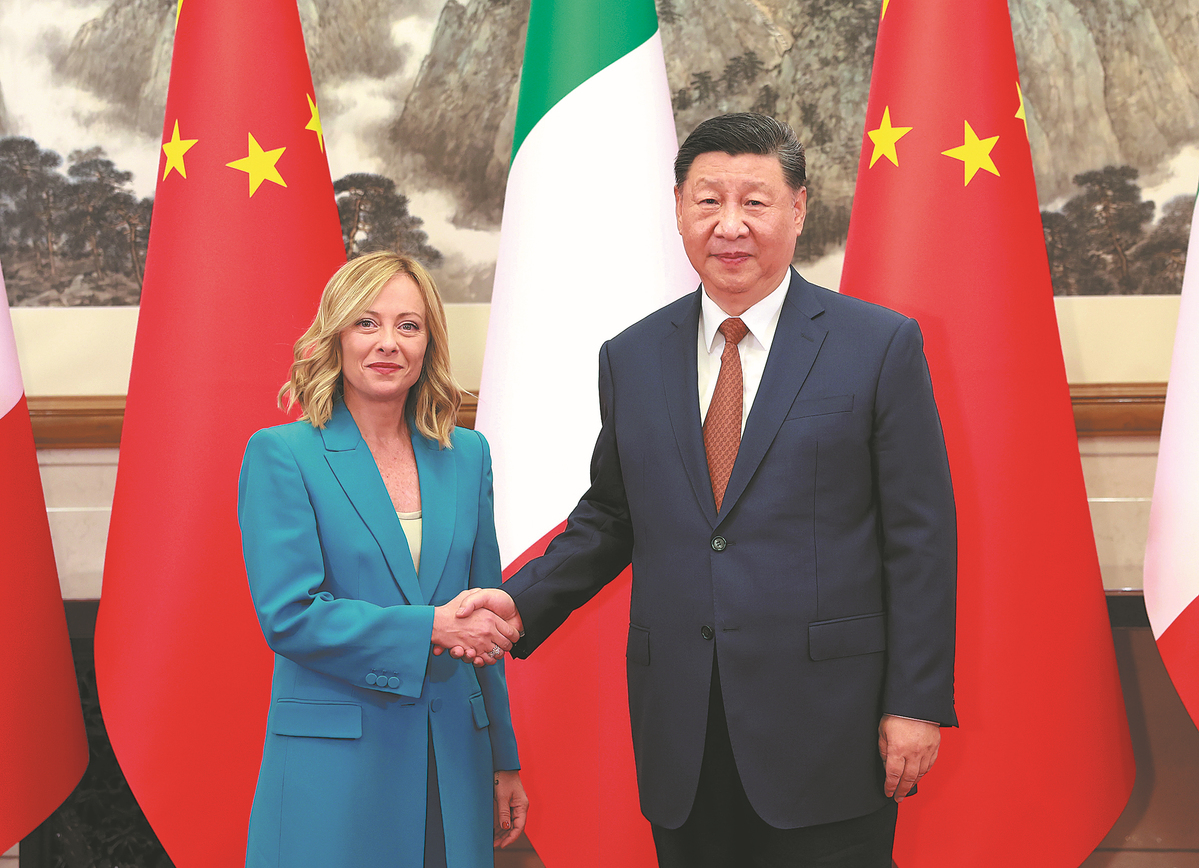 A sound and stable China-Italy relationship serve the common interests of both nations, President Xi Jinping told visiting Italian Prime Minister Giorgia Meloni on Monday, urging the two countries to stay committed to mutual opening-up and cooperation.