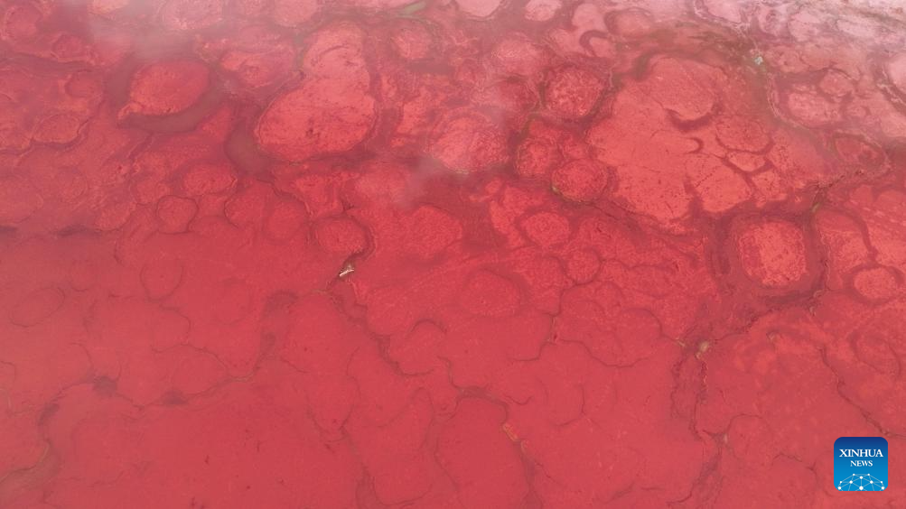 An aerial drone photo taken on July 31, 2024 shows a lake in the Badain Jaran Desert in north China's Inner Mongolia Autonomous Region. Located in the hyper-arid region of northwestern China, the Badain Jaran Desert is the country's third largest desert and second largest drifting desert.