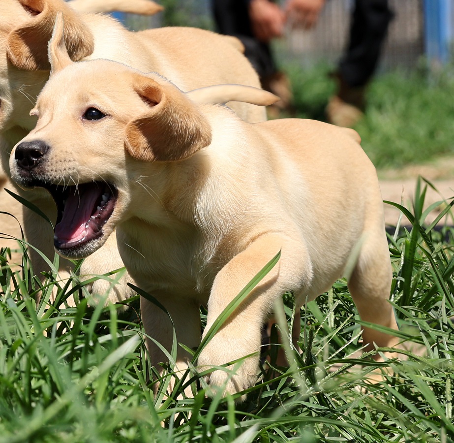 Puppies that are about 3 months old practice retrieving skills at the center. (WANG ZHUANGFEI/CHINA DAILY)