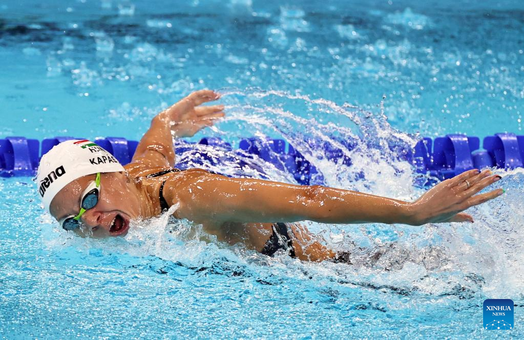 Boglarka Kapas of Hungary competes during the Women's 200m Butterfly Heat of swimming at the Paris 2024 Olympic Games in Paris, France, on July 31, 2024. (Xinhua/Luo Yuan)