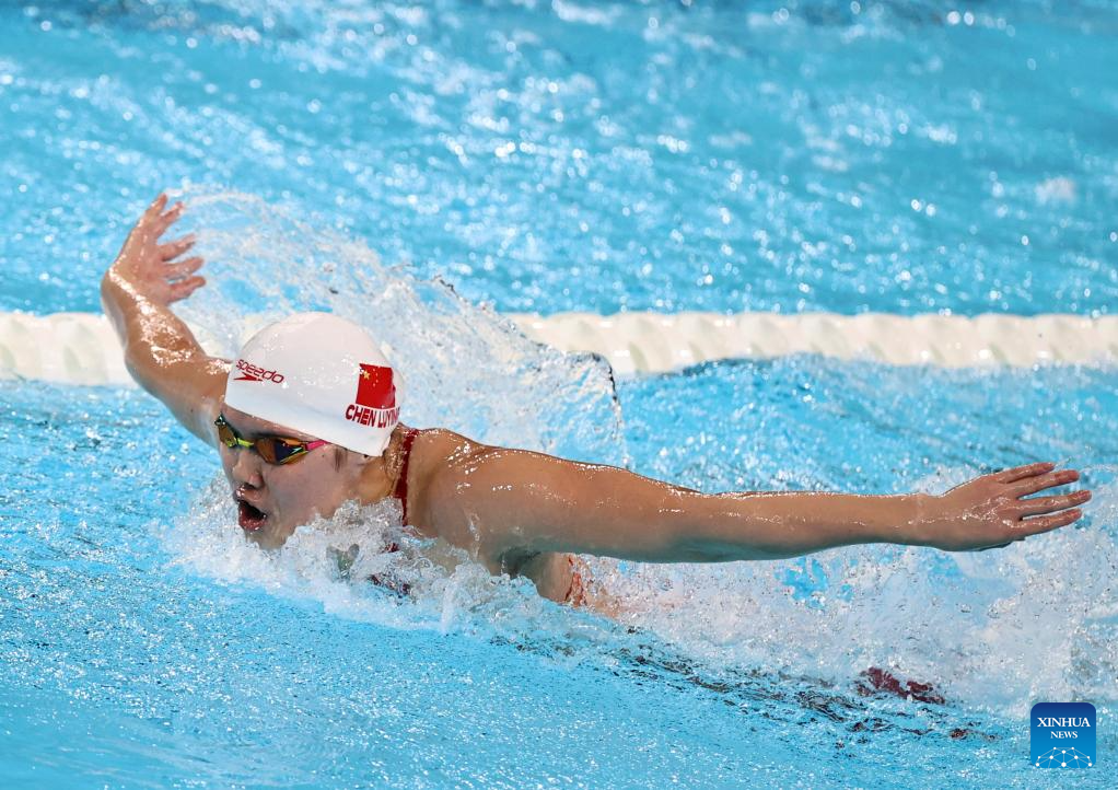 Chen Luying of China competes during the Women's 200m Butterfly Heat of swimming at the Paris 2024 Olympic Games in Paris, France, on July 31, 2024. (Xinhua/Luo Yuan)