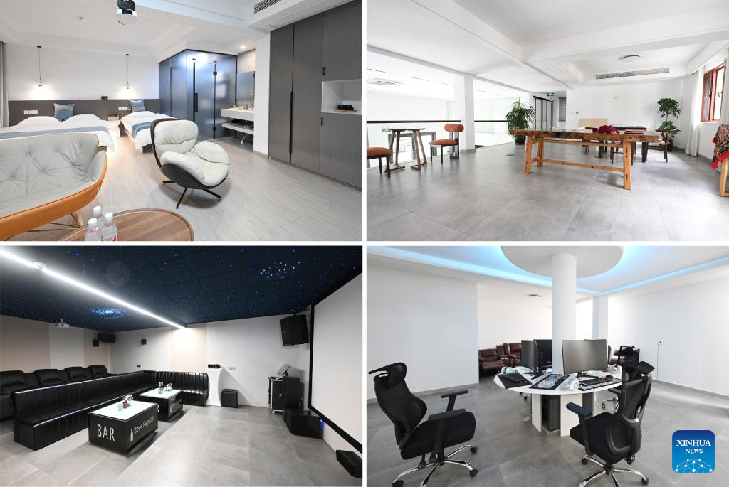 This combo photo shows rooms of a homestay in Shangye Village of Baita Town in Xianju County, east China's Zhejiang Province, July 28, 2024.