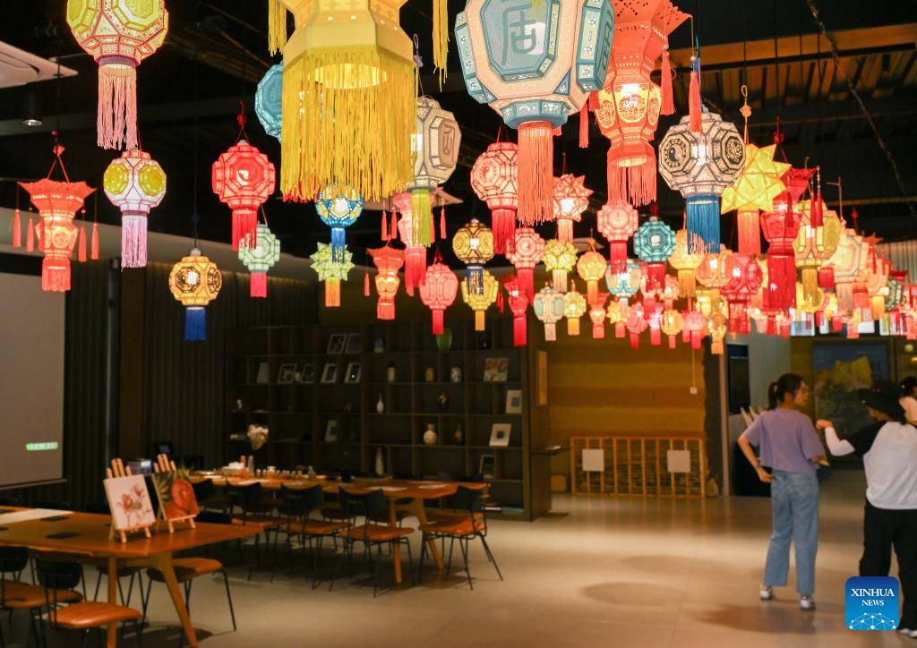 This photo shows Xianju lanterns at an art center in Shangye Village of Baita Town in Xianju County, east China's Zhejiang Province, July 28, 2024.