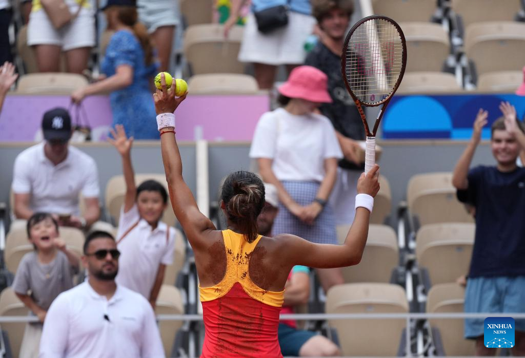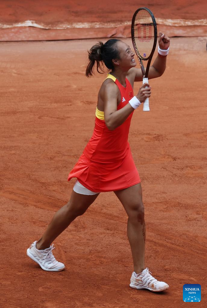 PARIS, Aug. 1 (Xinhua) -- Australian Open finalist Zheng Qinwen upset top seed Iga Swiatek 6-2, 7-5 in a historic win to book her place in the gold medal match of Olympic women's singles here at Roland Garros on Thursday.