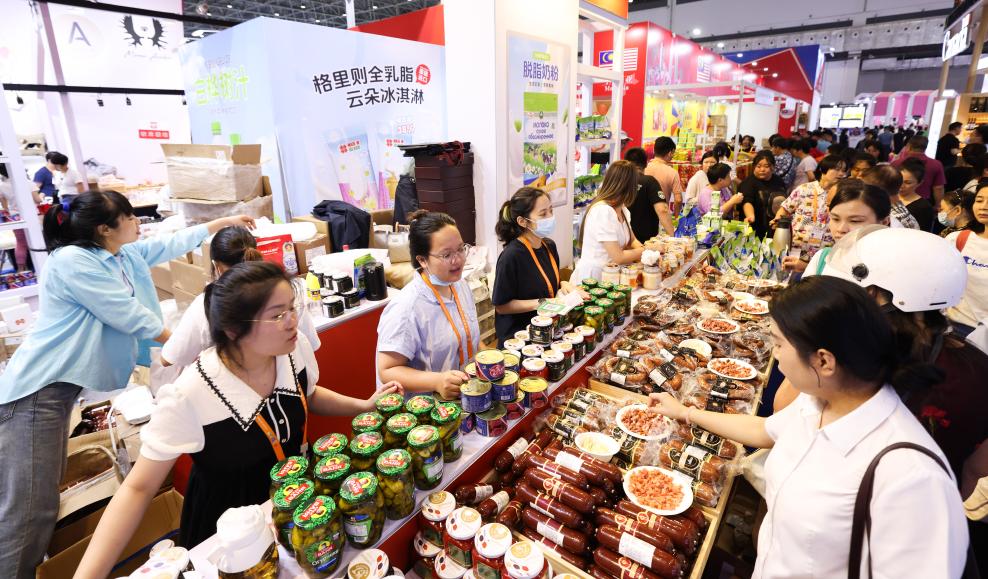 Visitors taste food from Belarus at the fourth China International Consumer Products Expo (CICPE) in Haikou, capital city of south China's Hainan Province, April 16, 2024. (Xinhua/Yang Guanyu)
