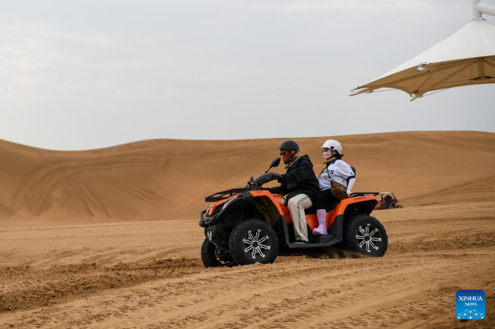 Ecological protection should also be highlighted in tourism development, Li said, adding that more chunks of lush greenery will be added in the desert to ensure the balance between economic activities and natural sustainability.(Xinhua/Li Zhipeng)