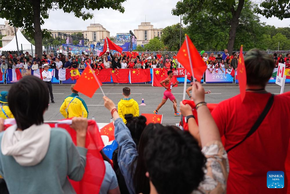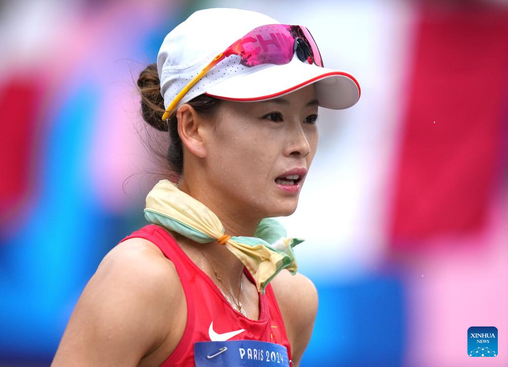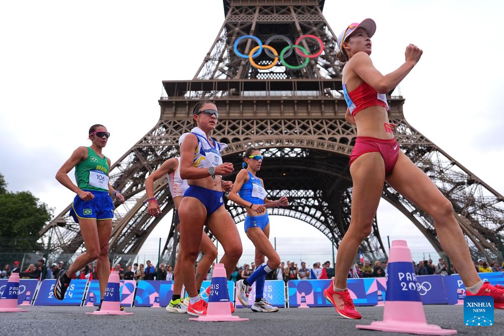 Yang Jiayu of China competes during the marathon race walk relay mixed of Athletics at the Paris 2024 Olympic Games in Paris, France, Aug. 7, 2024. (Xinhua/Li Gang)