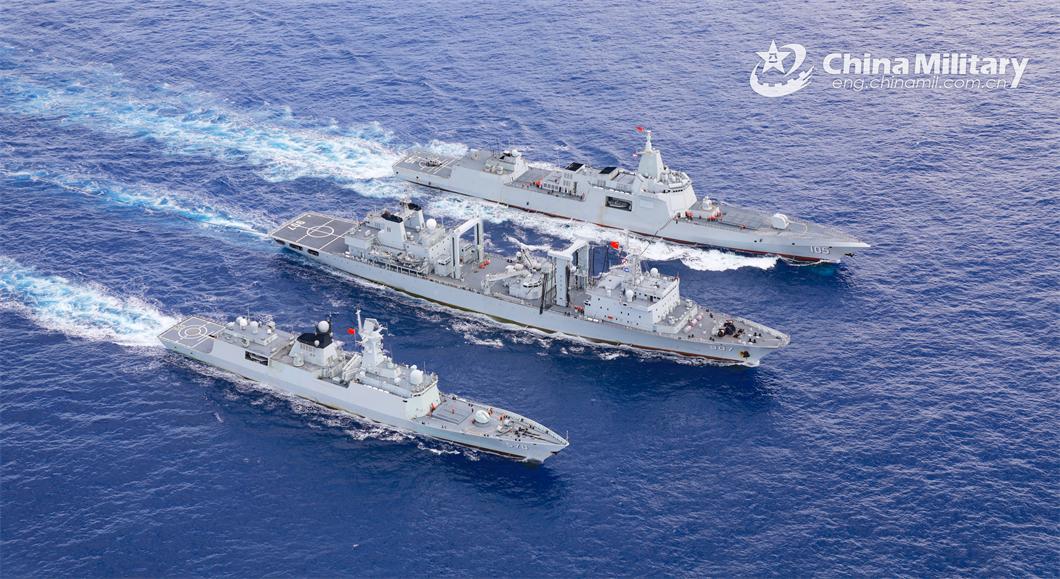 Naval vessels attached to a flotilla of a unit under the PLA Navy conduct replenishment-at-sea during a maritime training exercise on June 12, 2024. (eng.chinamil.com.cn/Photo by Wu Di)