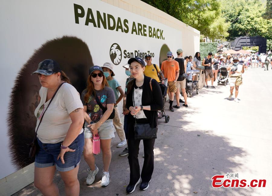 Visitors queue up to view the two giant pandas at the San Diego Zoo, California, the United States, Aug. 8, 2024. (Photo: China News Service/Liu Guanguan)