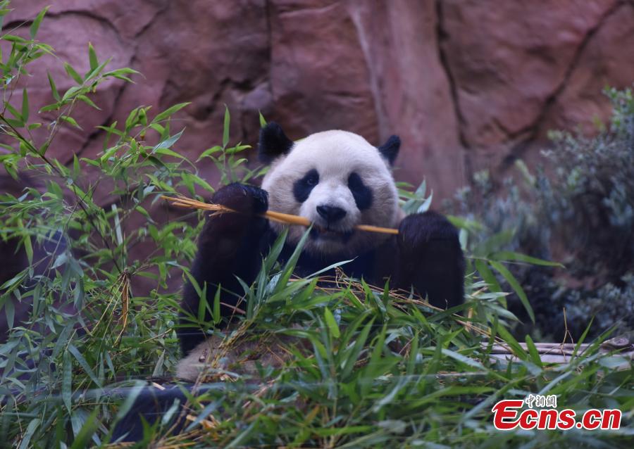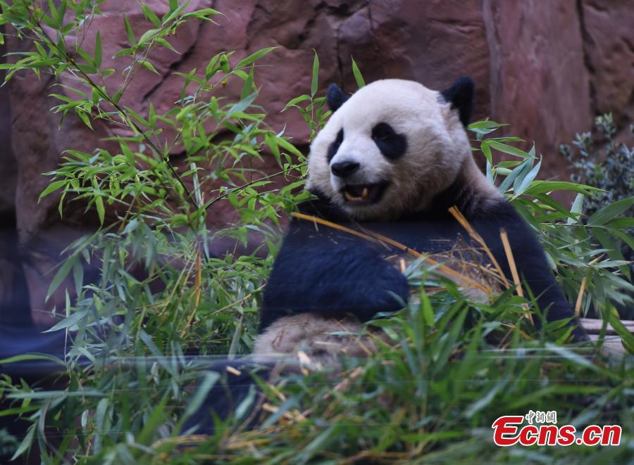 Giant panda Xin Bao eats bamboo at the San Diego Zoo, California, the United States, Aug. 8, 2024. (Photo: China News Service/Liu Guanguan)