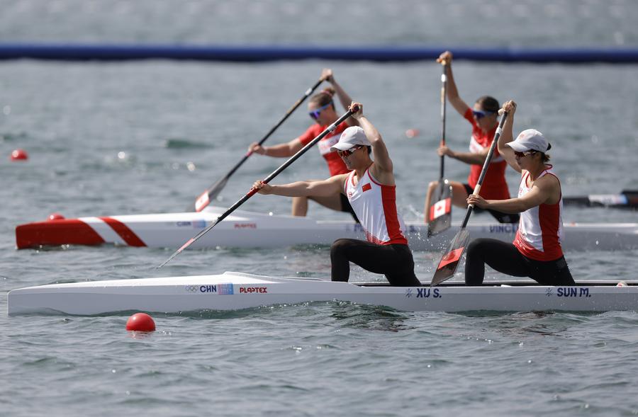 PARIS, Aug. 9 (Xinhua) -- China's Xu Shixiao and Sun Mengya defended their title in the women's canoe double 500m final at the Paris Olympics here on Friday.