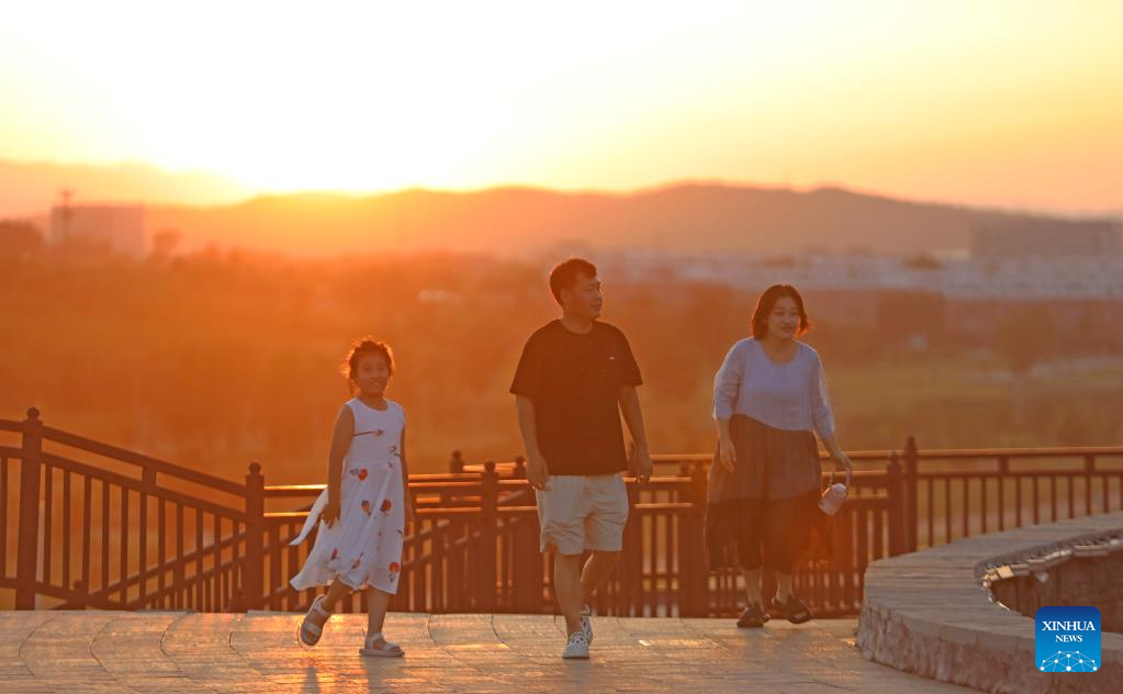 Citizens enjoy the view at the Beipiao mountain park in Beipiao City, northeast China's Liaoning Province, Aug. 8, 2024. Liaoning has strengthened restoration of ecological environment and accelerated the comprehensive treatment of mines in recent years. The quarry-transformed mountain park in Beipiao provides a summer resort for visitors. (Xinhua/Yang Qing)