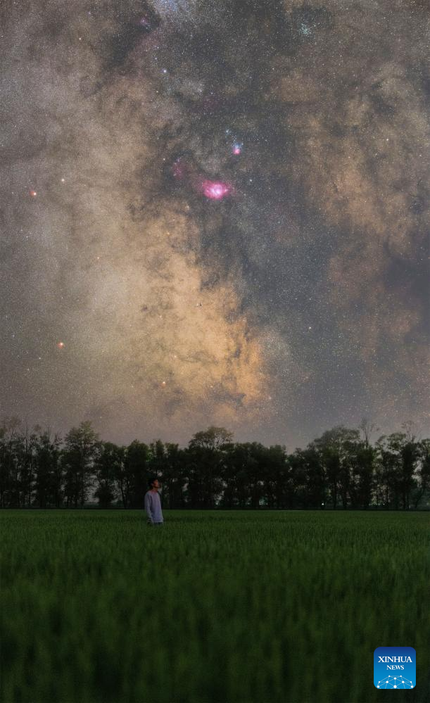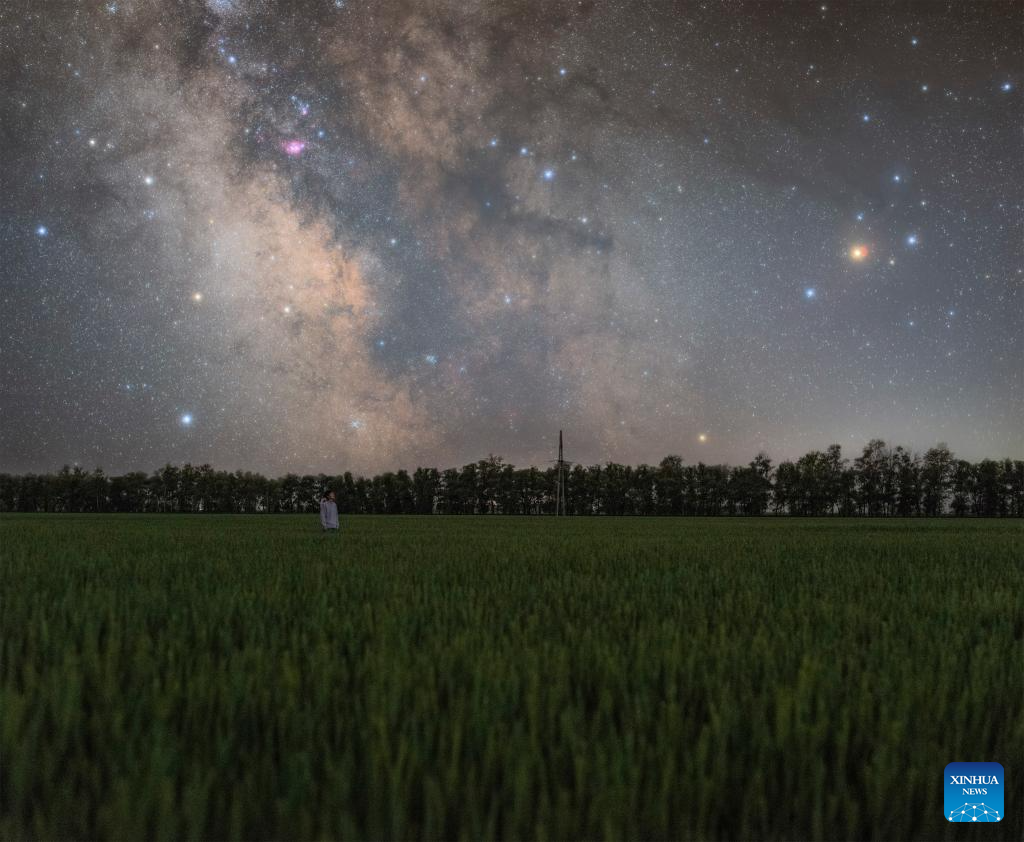 This composite photo taken on July 30, 2024 shows the starry sky over a wheat field in Wanyou Village of Shangjieji Town, Fujin City, northeast China's Heilongjiang Province. (Photo by Qu Yubao/Xinhua)